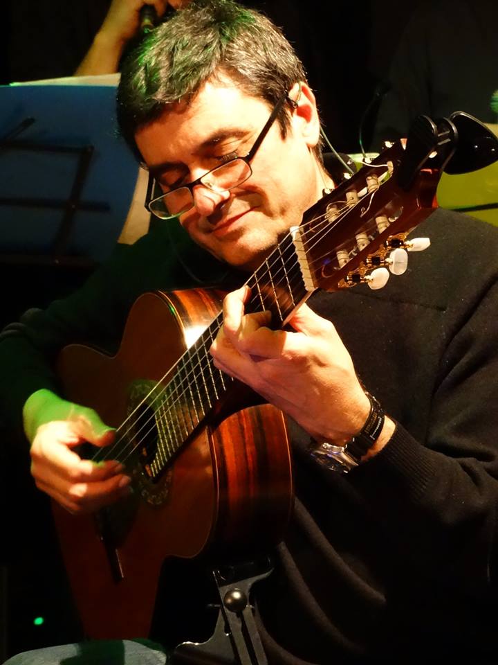 MASSIMO AURELI nato a Roma, ha studiato inizialmente con Bruno Battisti D’Amario, proseguendo poi con Carlo Carfagna al Conservatorio “S. Cecilia” di Roma, dove nel 1981 ha conseguito il diploma con il massimo dei voti. In seguito si e perfezionato con Alirio Diaz, José Tomas e Mario Gangi. Svolge un’intensa attività concertistica sia come solista che in varie formazioni da camera, tra cui il “Trio Chitarristico S. Cecilia” (gruppo cameristico formatosi nel 1984), con il quale propone un originale repertorio basato principalmente su trascrizioni ed arrangiamenti (da lui stesso elaborati) di musiche di autori del ‘900 (Piazzolla, Gershwin, De Falla, Debussy, Albeniz, Granados, Villa-Lobos, Ginastera, Bartok etc.). Con tale formazione strumentale si è esibito presso importanti rassegne e Festivals (Associazione Musicale Etnea, Filarmonica Laudamo, Festival Barocco, Concerti a Villa Pamphili, Camerata Musicale Barese, Amici della Musica di Pistoia, Festival Internazionale di Siracusa, Festival di Spoleto, etc.); inoltre, sempre con il Trio Chitarristico S. Cecilia, ha effettuato numerose tournees all’estero (Singapore, Malaysia, Turchia, Inghilterra, Spagna, Svezia, Cecoslovacchia, Algeria, Polonia, Portogallo, Grecia). Ha partecipato a numerose trasmissioni radiofoniche sia per la RAI che per la Radio Vaticana. Nel campo della musica leggera ha collaborato con il cantante Francesco de Gregori e con i più importanti compositori di Musica da Film (Morricone, Piccioni, Serio, Piovani, Ortolani, Bacalov, Piersanti). Nell’84 ha effettuato una lunga tournée in Giappone accompagnando, in qualità di solista, il trombettista jazz Nini Rosso. Inoltre con l’Orchestra da Camera dell’Unione Musicisti di Roma ha eseguito i concerti per Chitarra e Orchestra di Giuliani e di Castelnuovo-Tedesco. Ha collaborato anche con il Teatro Dell’Opera di Roma per la realizzazione del Balletto Nozze di Sangue con musiche di Garcia Lorca e Turina.