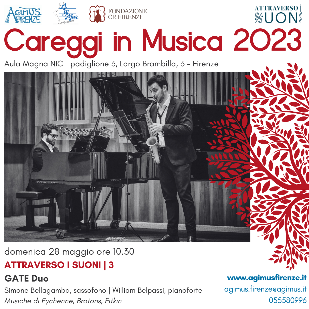 Il GATE DUO nasce nel 2016 dall’incontro del saxofonista Simone Bellagamba e del pianista William Belpassi. I due, oltre a frequentare assiduamente i relativi repertori solistici esibendosi in contesti nazionali e internazionali, coltivano una comune passione per la musica da camera che li spinge a un’incessante ricerca tra brani originali e trascrizioni per la propria formazione. In questo modo hanno creato un vasto e caratteristico repertorio che spazia dalla musica del 700/800 fino ai brani contemporanei, non disdegnando contaminazioni di elettronica e world music. Il Gate Duo è risultato vincitore di primi premi assoluti in concorsi internazionali di musica da camera (Dinu Lipatti, Cristina di Svezia, 7 Note Romane) e svolge attività concertistica in Italia e all’estero. Nel febbraio 2023 pubblicano il disco Remembranza con l’etichetta svizzera BAM Music International.