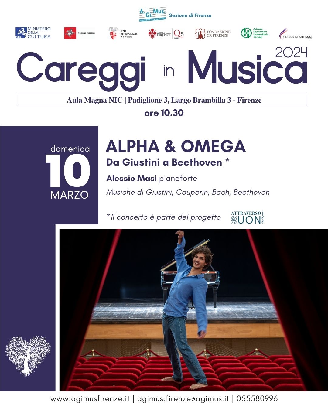 Prossimo appuntamento, domenica 10 marzo, alle ore 10.30, presso l’Aula Magna NIC, padiglione 3 di Careggi, il giovane pianista, Alessio Masi, eseguirà musiche di Giustini, Couperin, Bach, Beethoven.