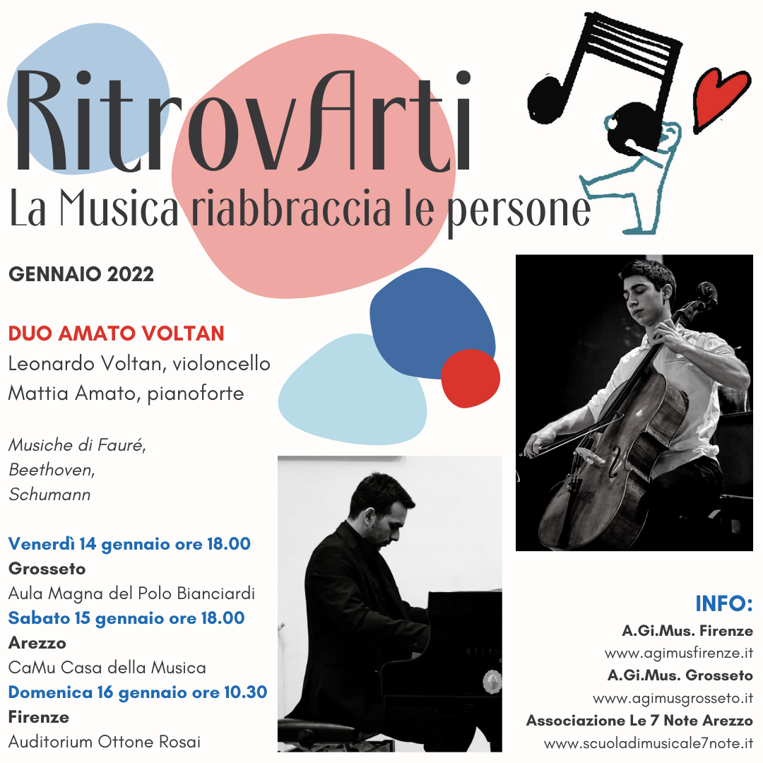 LEONARDO VOLTAN, classe 2003, studia il violoncello dall’età di sei anni presso L’Istituto di alta formazione musicale Rinaldo Franci di Siena dapprima col Mº Francesco Fontana ed in seguito con Giuseppina Runza. Si è perfezionato con Luca Provenzani, Francesco Pepicelli, Luca Simoncini e Giuseppe Barutti. Nel 2020 ha ottenuto il secondo premio al concorso “Crescendo” di Firenze, nel 2021 ha vinto il primo premio assoluto al concorso regionale “Lions” città di Grosseto e il primo premio al “Crescendo” di Firenze.