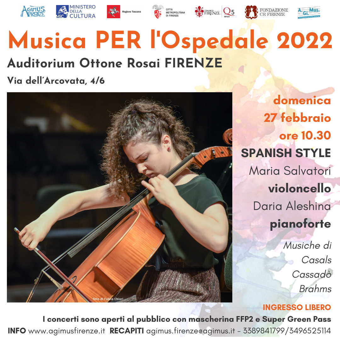 MARIA SALVATORI nata a Firenze nel 2004, inizia lo studio del violoncello all’età di cinque anni, dimostrando fin da subito un talento particolare, che la porta ben presto ad ottenere significativi riconoscimenti. Nel 2016 vince la borsa di studio come migliore studente in assoluto della Scuola di Musica di Fiesole sotto la guida di Marianne Chen e Luca Provenzani; dall’ottobre 2017 studia con Ivan Monighetti a Basilea. Nel 2019 si aggiudica la borsa di studio per frequentare la Internationale Musikakademie in Liechtestein e nel 2021 vince la borsa di studio per l’ingresso alla Escuela de Música Reina Sofia di Madrid che frequenta da settembre. Vincitrice di numerosi premi si ricordano tra gli altri il primo premio al Concorso Nazionale “Riviera Etrusca”, il primo premio al 7° Concorso Internazionale “Antonio Salieri”, il primo premio all’11° Concorso Internazionale “Antonio Janigro” in Croazia ed il primo premio assoluto al XII Concorso Naz.le Città di Firenze Premio Crescendo ed. 2021. Nel febbraio 2019 ha vinto l’audizione come primo violoncello della RCO Young, l’orchestra formata da giovani di tutta Europa nata in seno al Royal Concertgebouw di Amsterdam e nel 2020 passa l’audizione per far parte della Verbier Festival Junior Orchestra (VFJO), dove suona anche come primo violoncello. Suona in diverse formazioni da camera come il trio, il quartetto e il duo con il pianoforte con le quali, nonostante la giovane età, si è già esibita in istituzioni concertistiche quali il Teatro La Fenice di Venezia, gli Amici della Musica di Firenze, la Filarmonica Romana e il Cantiere Internazionale d’arte di Montepulciano.